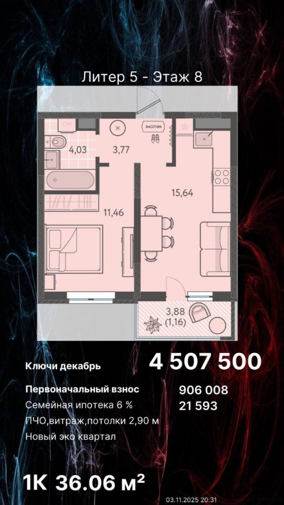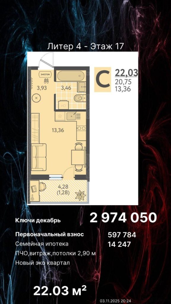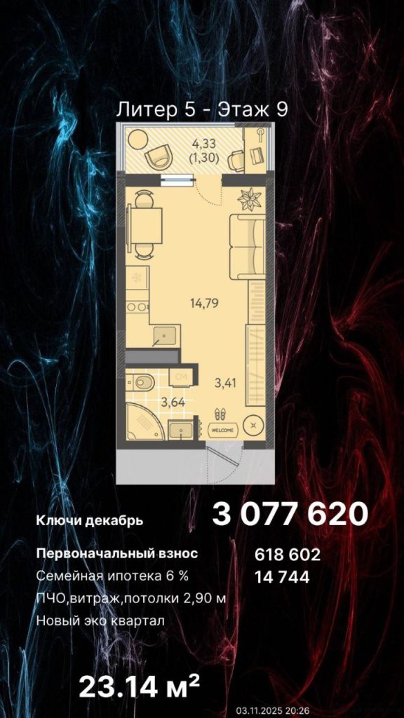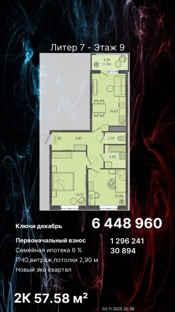 В продаже — квартиры с предчистовой отделкой, потолками 2,9 м и витражным остеклением.