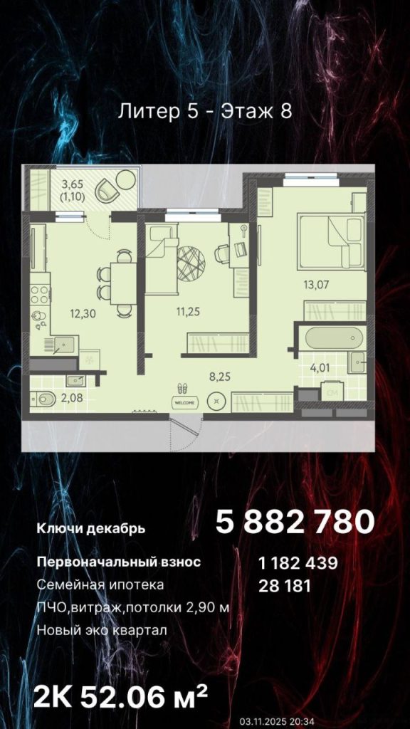 2-комнатная 52,06 м² — от 5 882 000 ₽;