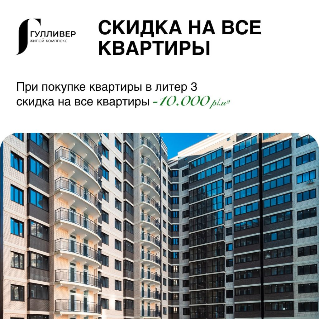 Декабрь — время, когда выгодные предложения достигают максимума. Для покупателей квартир в ЖК Гулливер действуют два ключевых бонуса — скидка на квадратный метр и возможность выйти на сделку с 0% первоначального взноса.