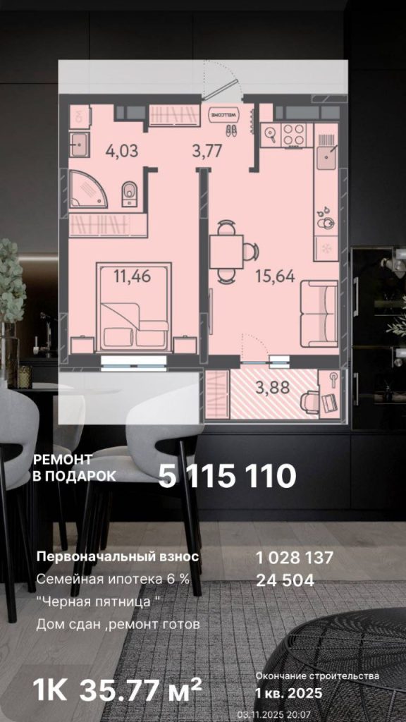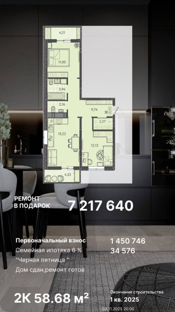 Предусмотрен первоначальный взнос от 715 000 руб.;