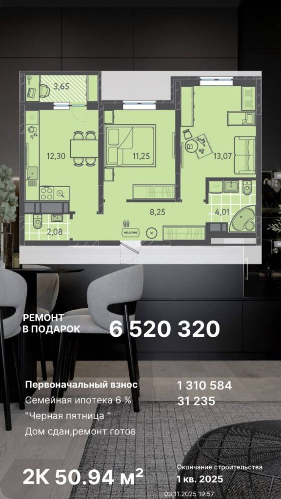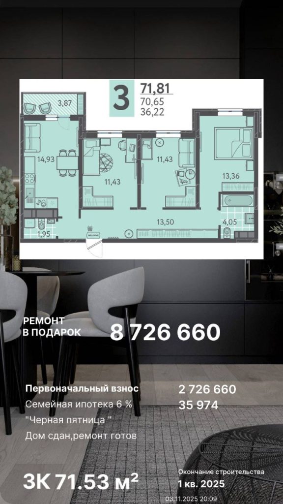 Ремонт выполнен полностью — покупка и заселение возможны сразу;