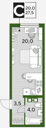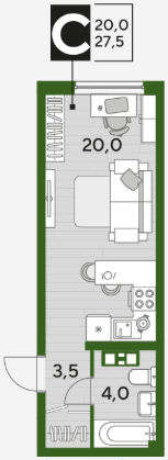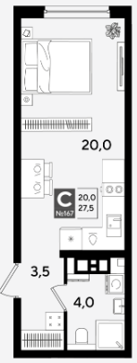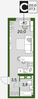 студия | 27.3 / 20.0 м² | от 5 427 240 руб. (198 800 руб./м²) | Планировка |