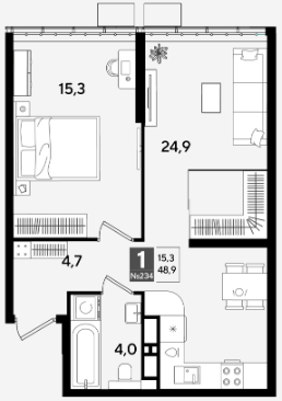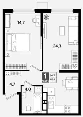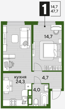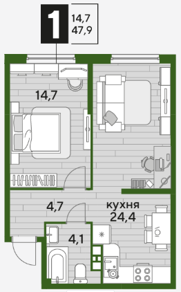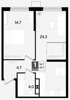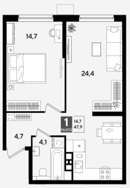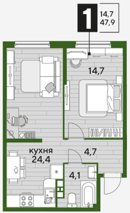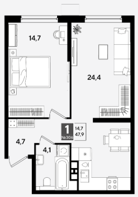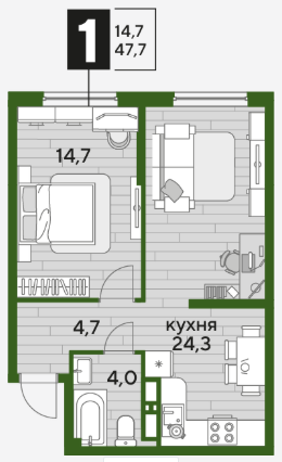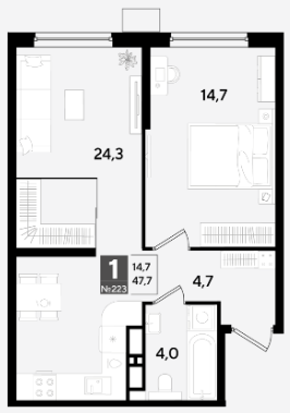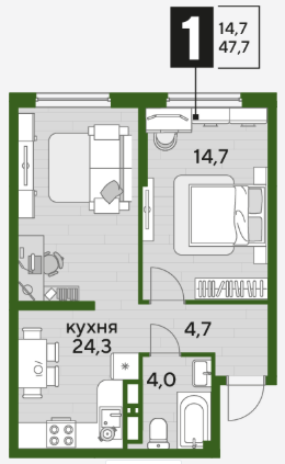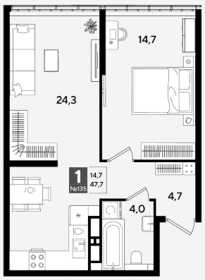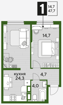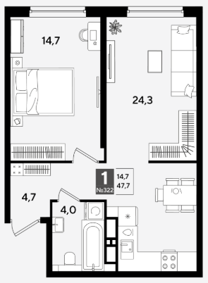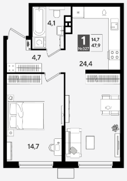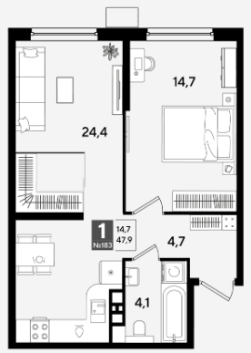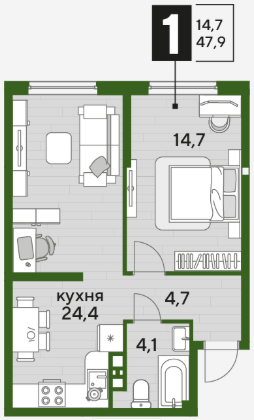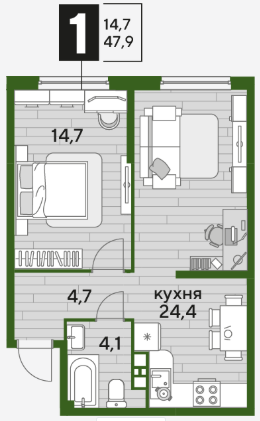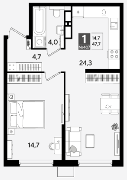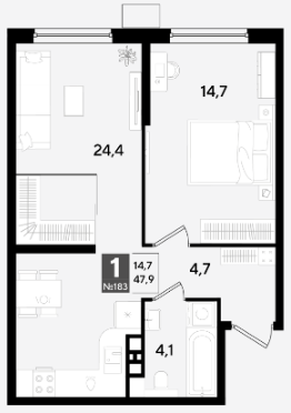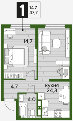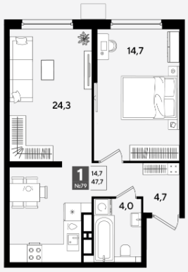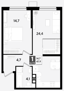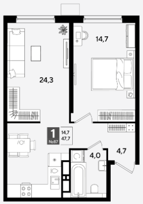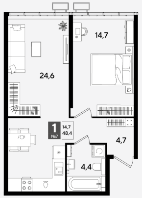 1 | 47.7 / 14.7 м² | от 7 922 970 руб. (166 100 руб./м²) | Планировка | |