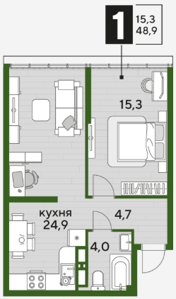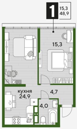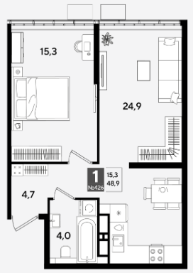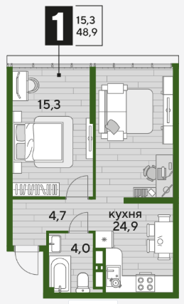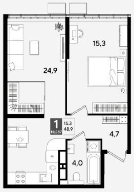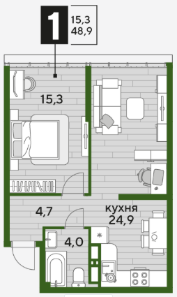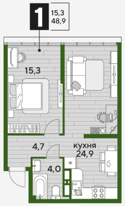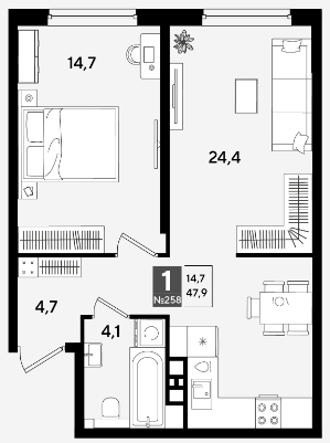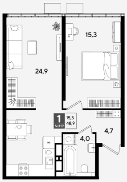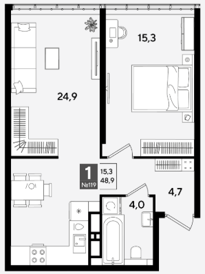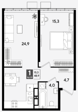 1 | 47.9 / 14.7 м² | от 8 119 050 руб. (169 500 руб./м²) | Планировка | |