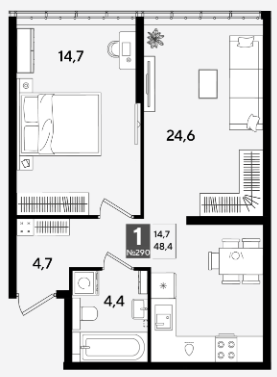 1 | 48.3 / 14.4 м² | от 7 839 090 руб. (162 300 руб./м²) | Планировка | |