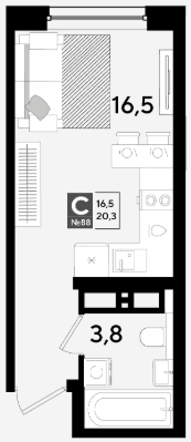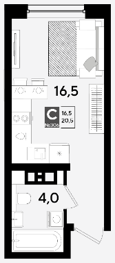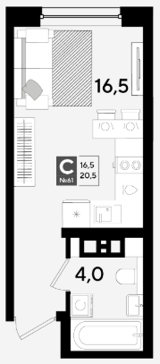 студия | 20.3 / 16.5 м² | от 4 679 150 руб. (230 500 руб./м²) | Планировка | |