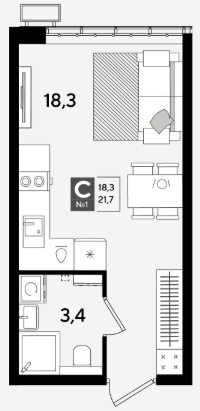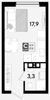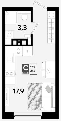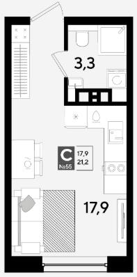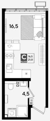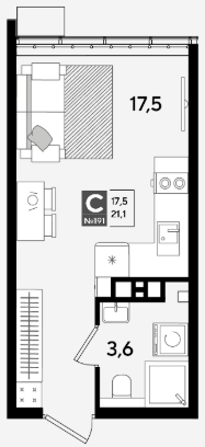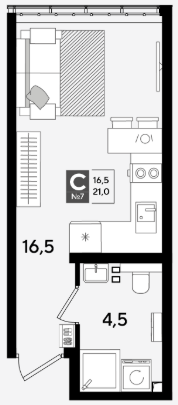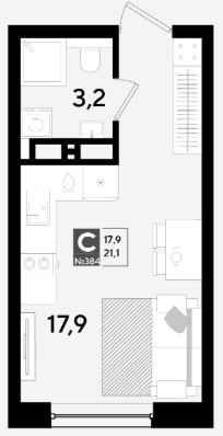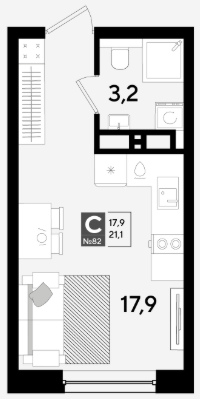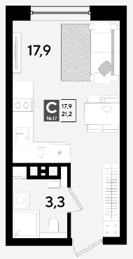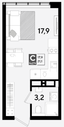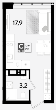 студия | 21.1 / 17.9 м² | от 4 789 700 руб. (227 000 руб./м²) | Планировка | |