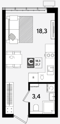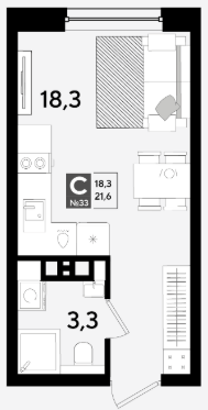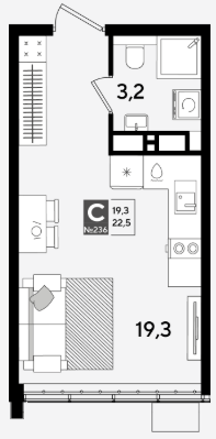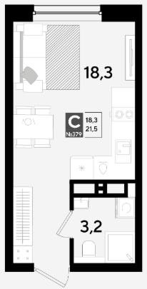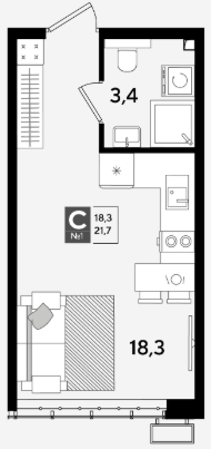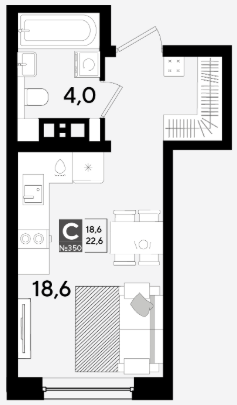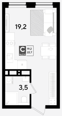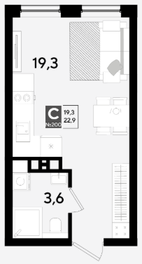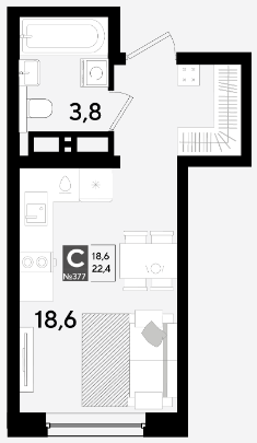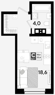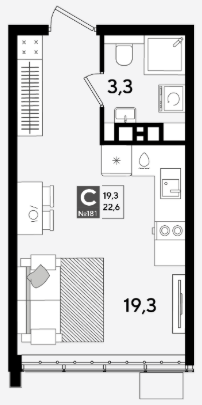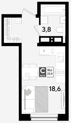 студия | 22.4 / 18.6 м² | от 4 999 680 руб. (223 200 руб./м²) | Планировка | |