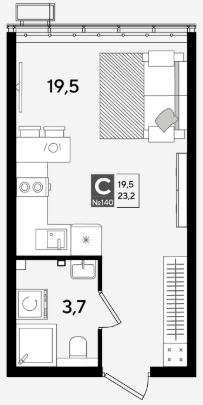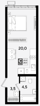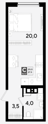 студия | 27.3 / 20.0 м² | от 5 339 880 руб. (195 600 руб./м²) | Планировка | |