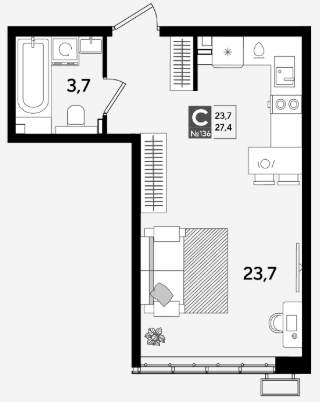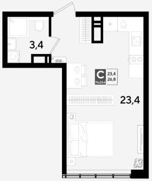 студия | 26.8 / 23.4 м² | от 5 534 200 руб. (206 500 руб./м²) | Планировка | |