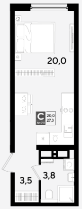 студия | 27.3 / 20.0 м² | от 5 359 750 руб. (196 328 руб./м²) | Планировка | |