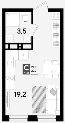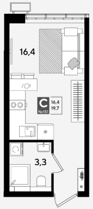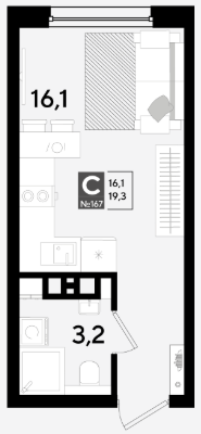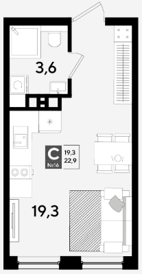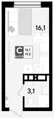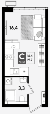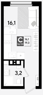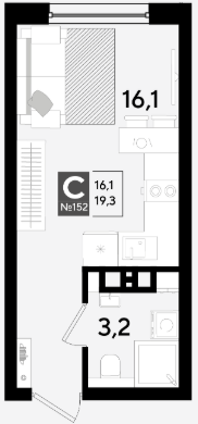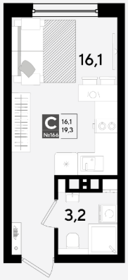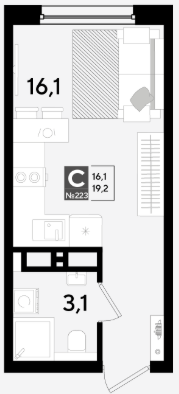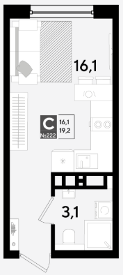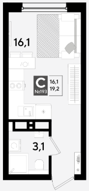 | студия | 19.2 / 16.1 м² | от 4 415 840 руб. (229 992 руб./м²) | Планировка | |
