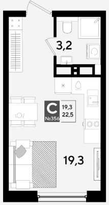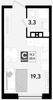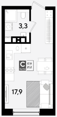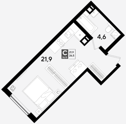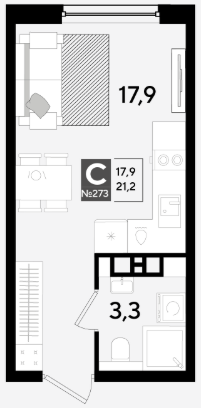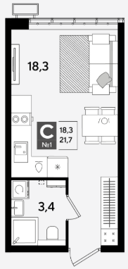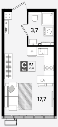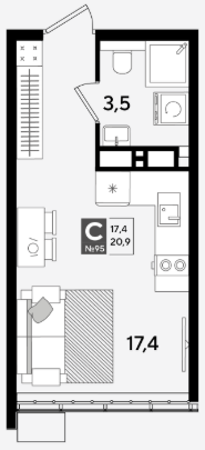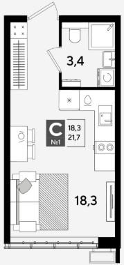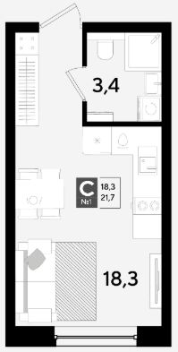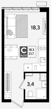 | студия | 21.7 / 18.3 м² | от 4 774 000 руб. (220 000 руб./м²) | Планировка | |