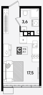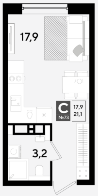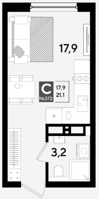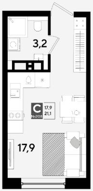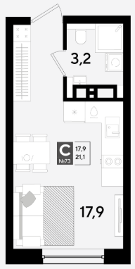 | студия | 21.1 / 17.9 м² | от 4 726 400 руб. (224 000 руб./м²) | Планировка | |