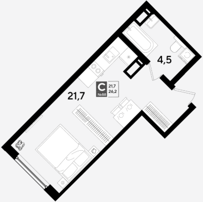 | студия | 26.2 / 21.7 м² | от 5 399 820 руб. (206 100 руб./м²) | Планировка | |