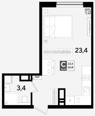 | студия | 26.8 / 23.4 м² | от 5 534 200 руб. (206 500 руб./м²) | Планировка | |