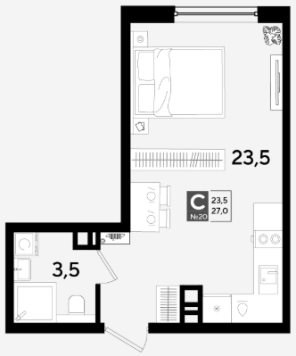 | студия | 27.3 / 20.0 м² | от 5 427 240 руб. (198 800 руб./м²) | Планировка | |