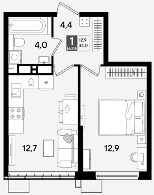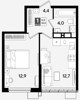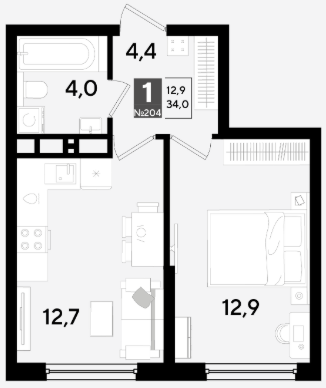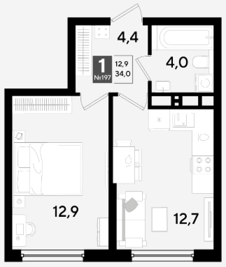 | 1 | 34 / 12.9 м² | от 6 460 000 руб. (190 000 руб./м²) | Планировка | |