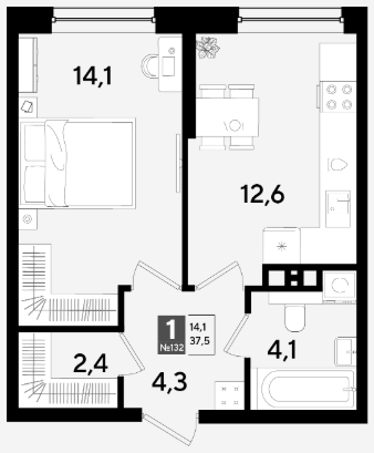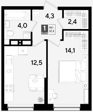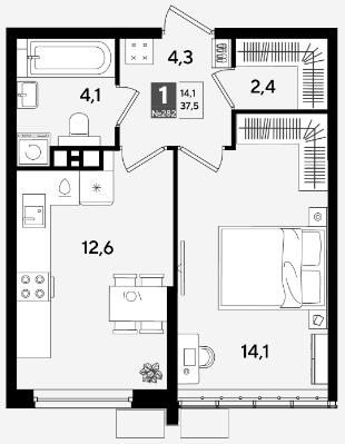 | 1 | 37.3 / 14.1 м² | от 6 874 389 руб. (184 300 руб./м²) | Планировка | |