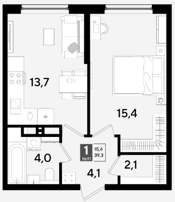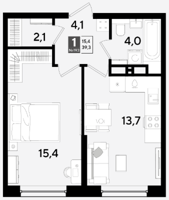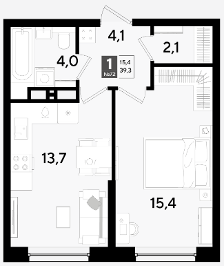| 1 | 39.3 / 15.4 м² | от 7 003 259 руб. (178 200 руб./м²) | Планировка |