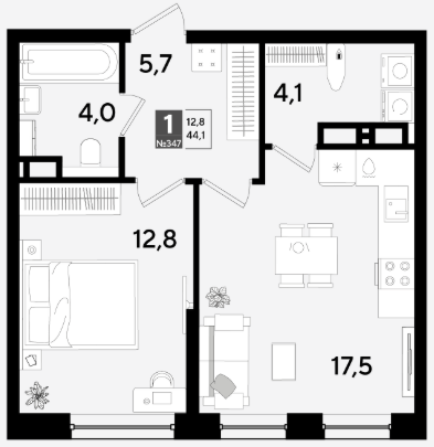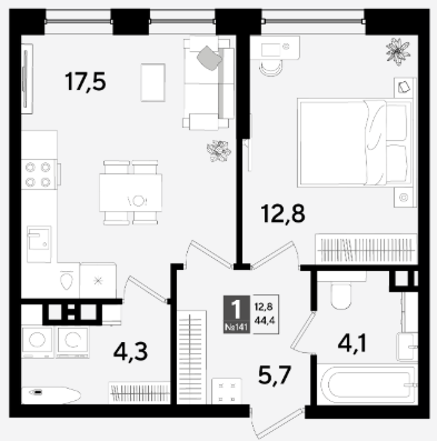 | 1 | 44.1 / 12.8 м² | от 7 863 030 руб. (178 300 руб./м²) | Планировка | |