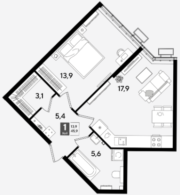 | 1 | 37.9 / 13.9 м² | от 6 803 519 руб. (179 512 руб./м²) | Планировка | |
