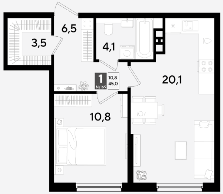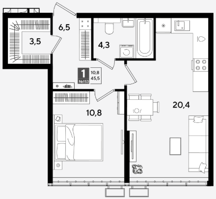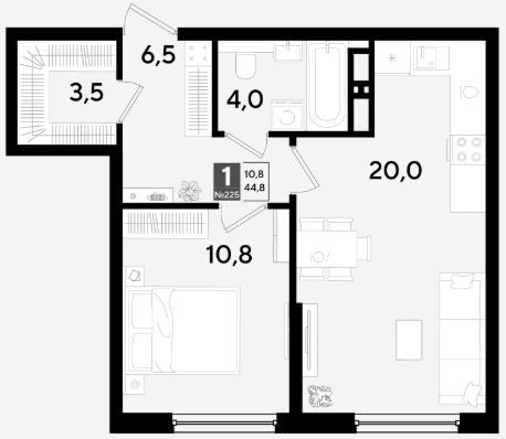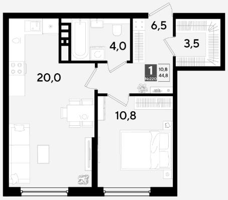 | 1 | 44.8 / 10.8 м² | от 8 122 239 руб. (181 300 руб./м²) | Планировка | |