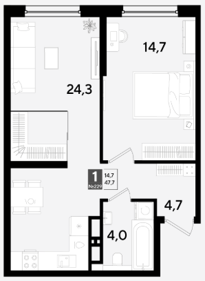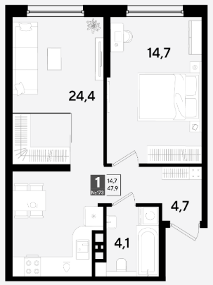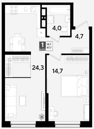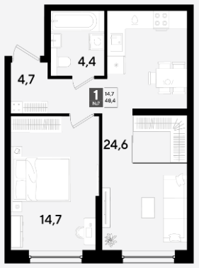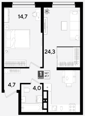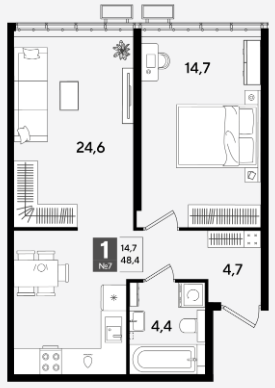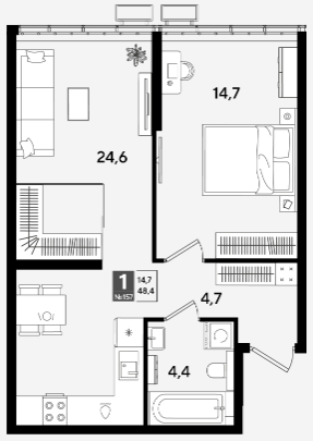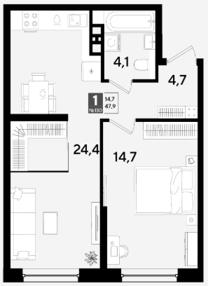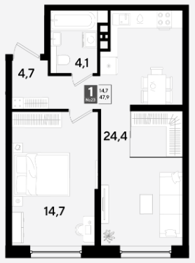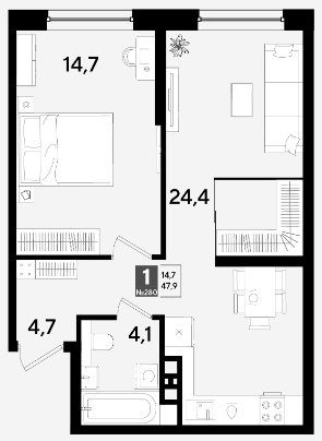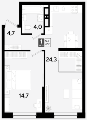 | 1 | 47.7 / 14.7 м² | от 7 839 090 руб. (164 342 руб./м²) | Планировка | |