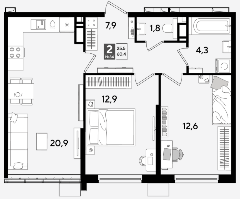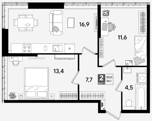 | 2 | 59.9 / 25.9 м² | от 9 272 520 руб. (154 800 руб./м²) | Планировка | |