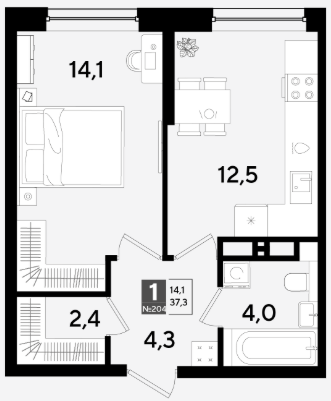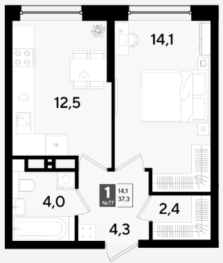 | 1 | 37.3 / 14.1 м² | от 7 072 079 руб. (189 600 руб./м²) | Планировка | |