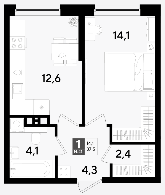 | 1 | 37.3 / 14.1 м² | от 7 116 839 руб. (190 800 руб./м²) | Планировка | |