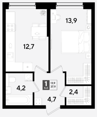 | 1 | 37.9 / 13.9 м² | от 7 132 780 руб. (188 200 руб./м²) | Планировка | |