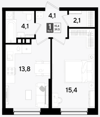 | 1 | 39.5 / 15.4 м² | от 7 228 500 руб. (183 000 руб./м²) | Планировка | |