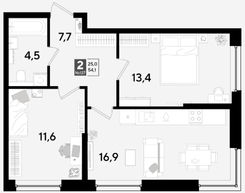 | 2 | 54.1 / 25.0 м² | от 8 531 570 руб. (157 700 руб./м²) | Планировка |