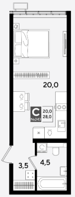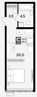 | студия | 28 / 20 м² | от 5 471 200 руб. (195 400 руб./м²) | Планировка |