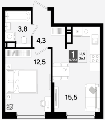 | 1 | 36.1 / 12.5 м² | от 6 884 270 руб. (190 700 руб./м²) | Планировка | |