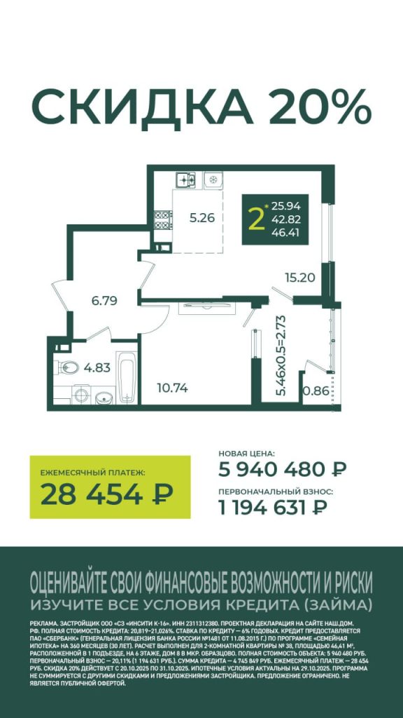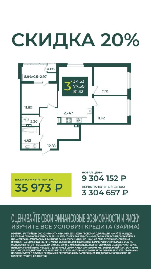 Скидка 20% действует до конца текущего месяца и распространяется на квартиры в доме № 8 микрорайона Образцово.