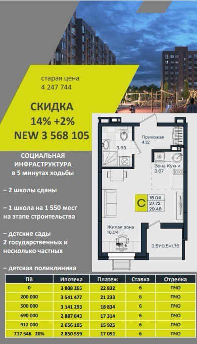 Спецпредложения различаются в зависимости от планировки и типа отделки — ниже приведены основные акционные варианты.