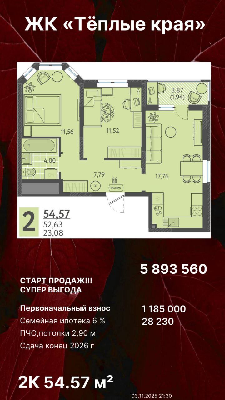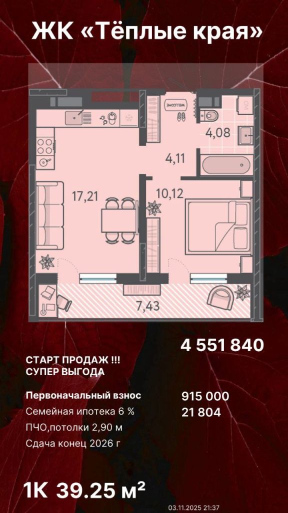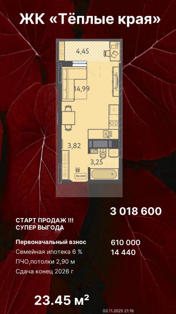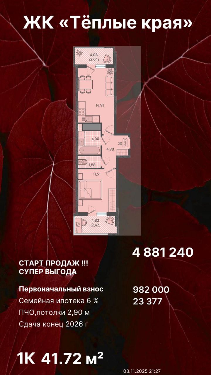 В жилом комплексе Тёплые края стартовали продажи квартир в третьей очереди — с выгодными условиями покупки и гибкими вариантами оплаты. Это отличная возможность выбрать современное жильё по привлекательной цене ещё на этапе строительства.