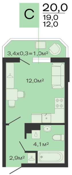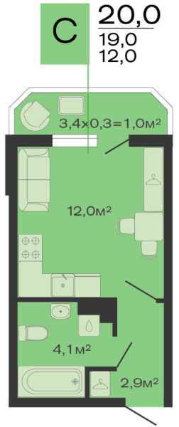 | студия | 20.0 / 12.0 м² | от 2 400 000 руб. (120 000 руб./м²) | Планировка | |