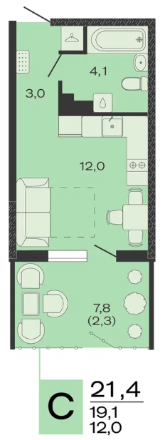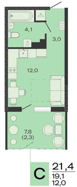 | студия | 21.4 / 12.0 м² | от 2 568 000 руб. (120 000 руб./м²) | Планировка | |