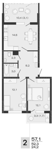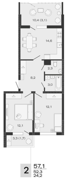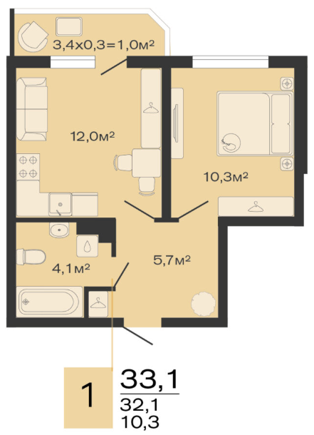 | 1 | 33.1 / 10.3 м² | от 3 641 000 руб. (110 000 руб./м²) | Планировка | |