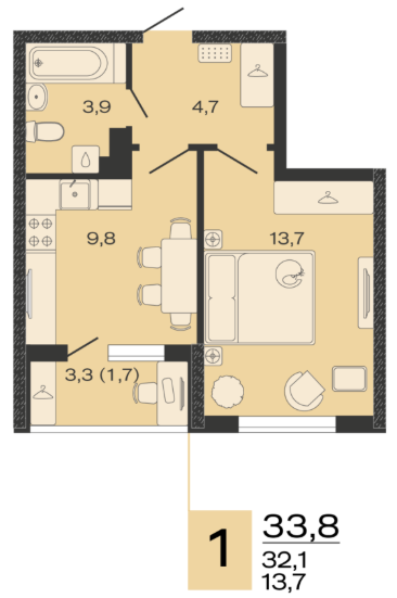| 1 | 33.8 / 13.7 м² | от 3 718 000 руб. (110 000 руб./м²) | Планировка | |