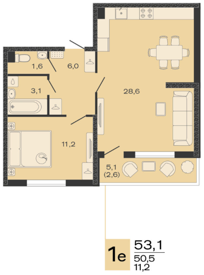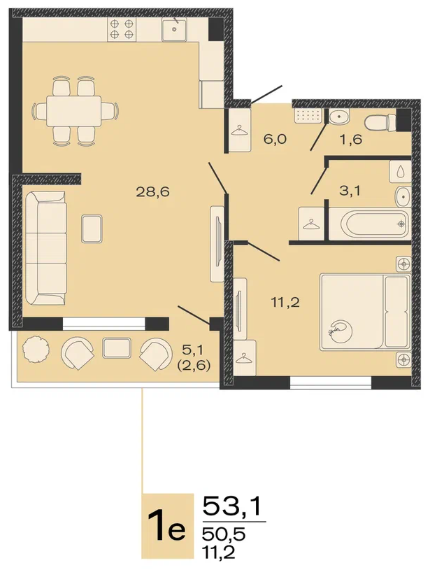 | 1 | 53.1 / 11.2 м² | от 5 841 000 руб. (110 000 руб./м²) | Планировка | |