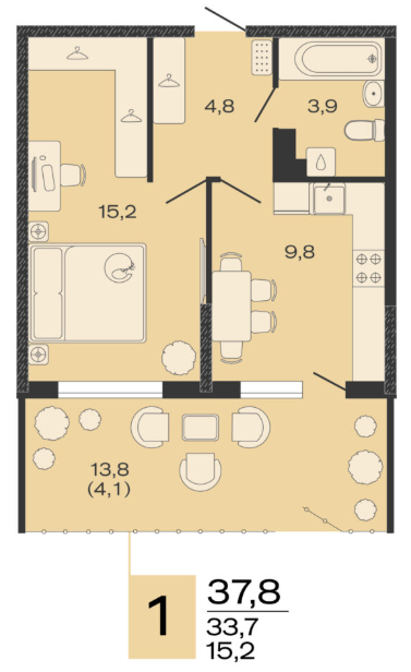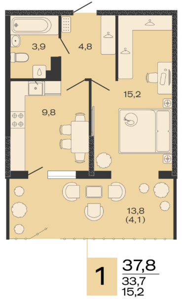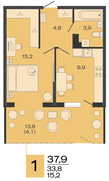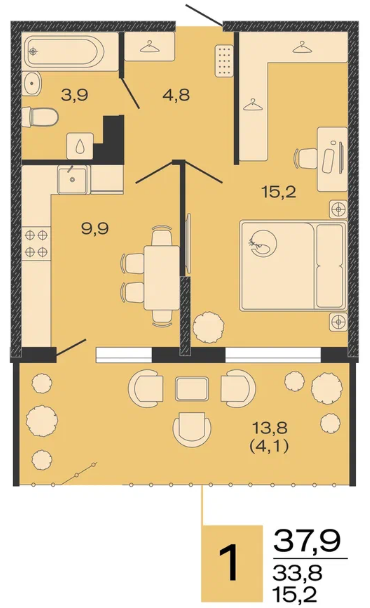 | 1 | 37.8 / 15.2 м² | от 4 158 000 руб. (110 000 руб./м²) | Планировка | |