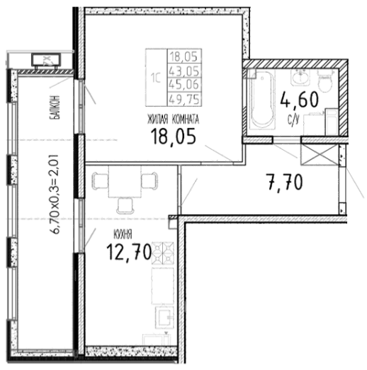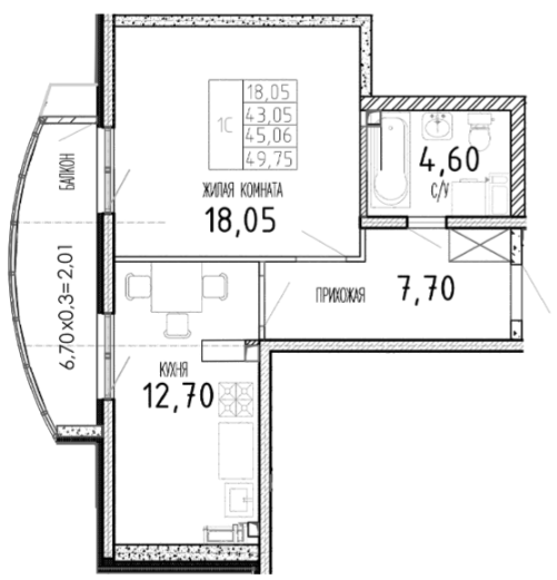 В жилом комплексе предлагается широкий выбор планировок, рассчитанных на современные запросы рынка.