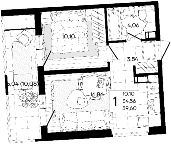 1 | 40.19 / 10.10 м² | от 5 144 320 руб. (128 000 руб./м²) | Планировка |