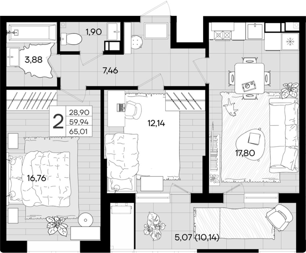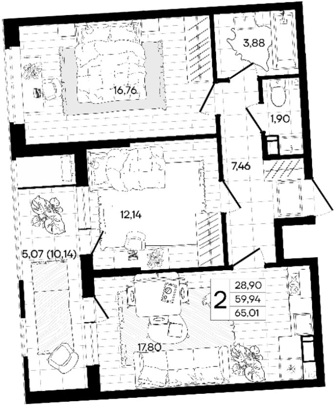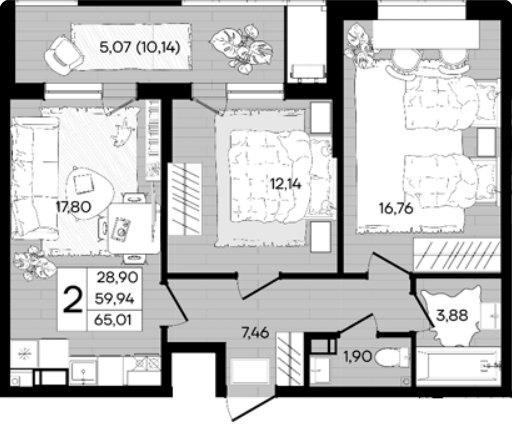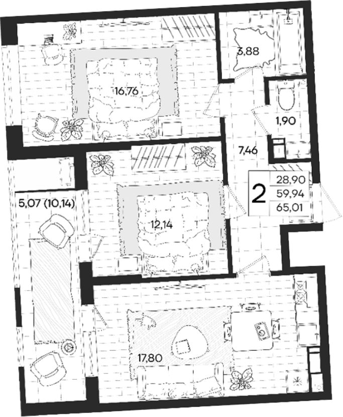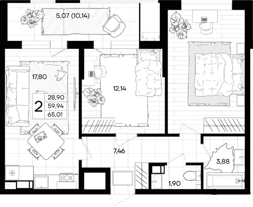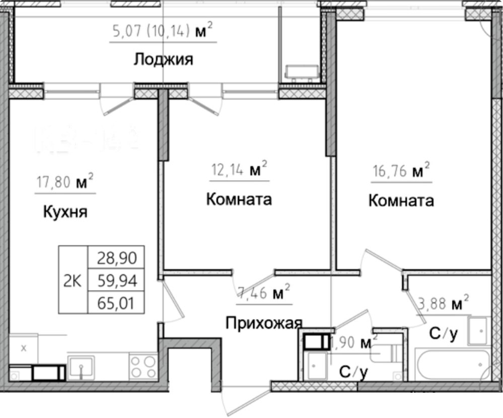 2 | 65.01 / 28.90 м² | от 7 021 080 руб. (108 000 руб./м²) | Планировка |