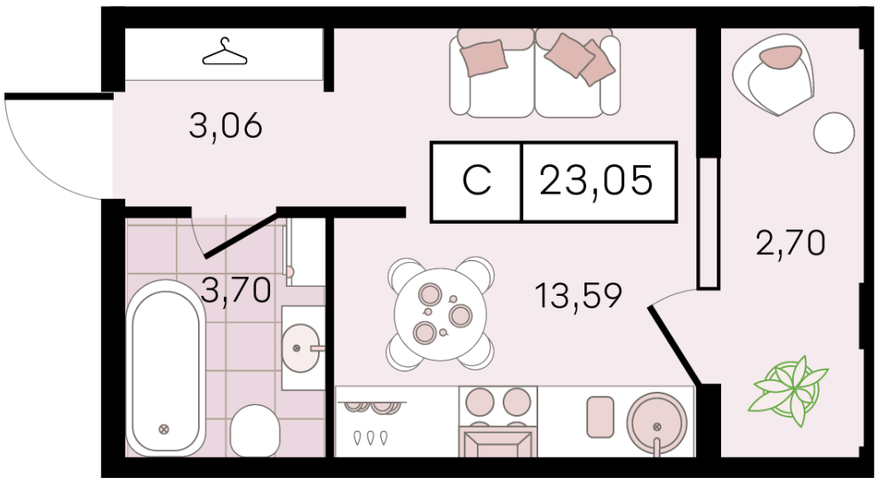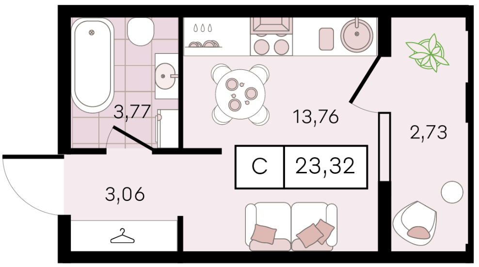 | студия | 23.32 / 13.76 м² | от 3 264 800 руб. (140 000 руб./м²) | Планировка | |