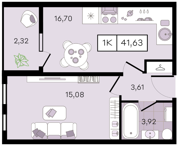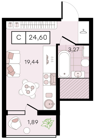 | студия | 24.60 / 19.44 м² | от 3 444 000 руб. (140 000 руб./м²) | Планировка | |